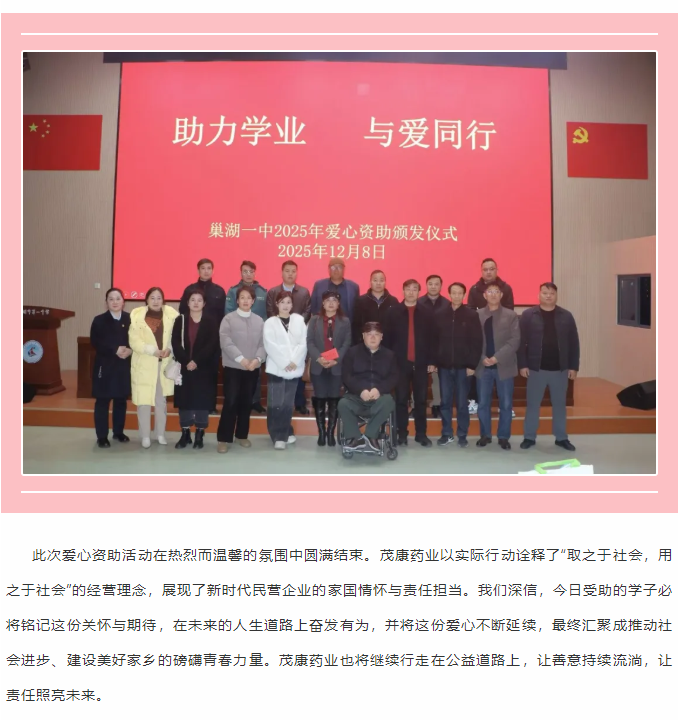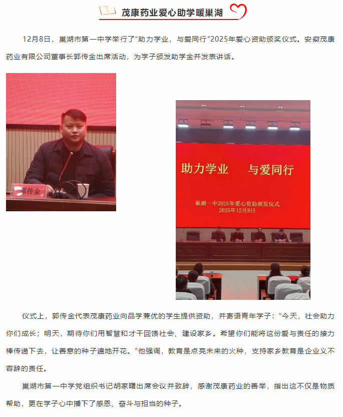 茂康藥業(yè)愛心助學(xué)暖巢湖